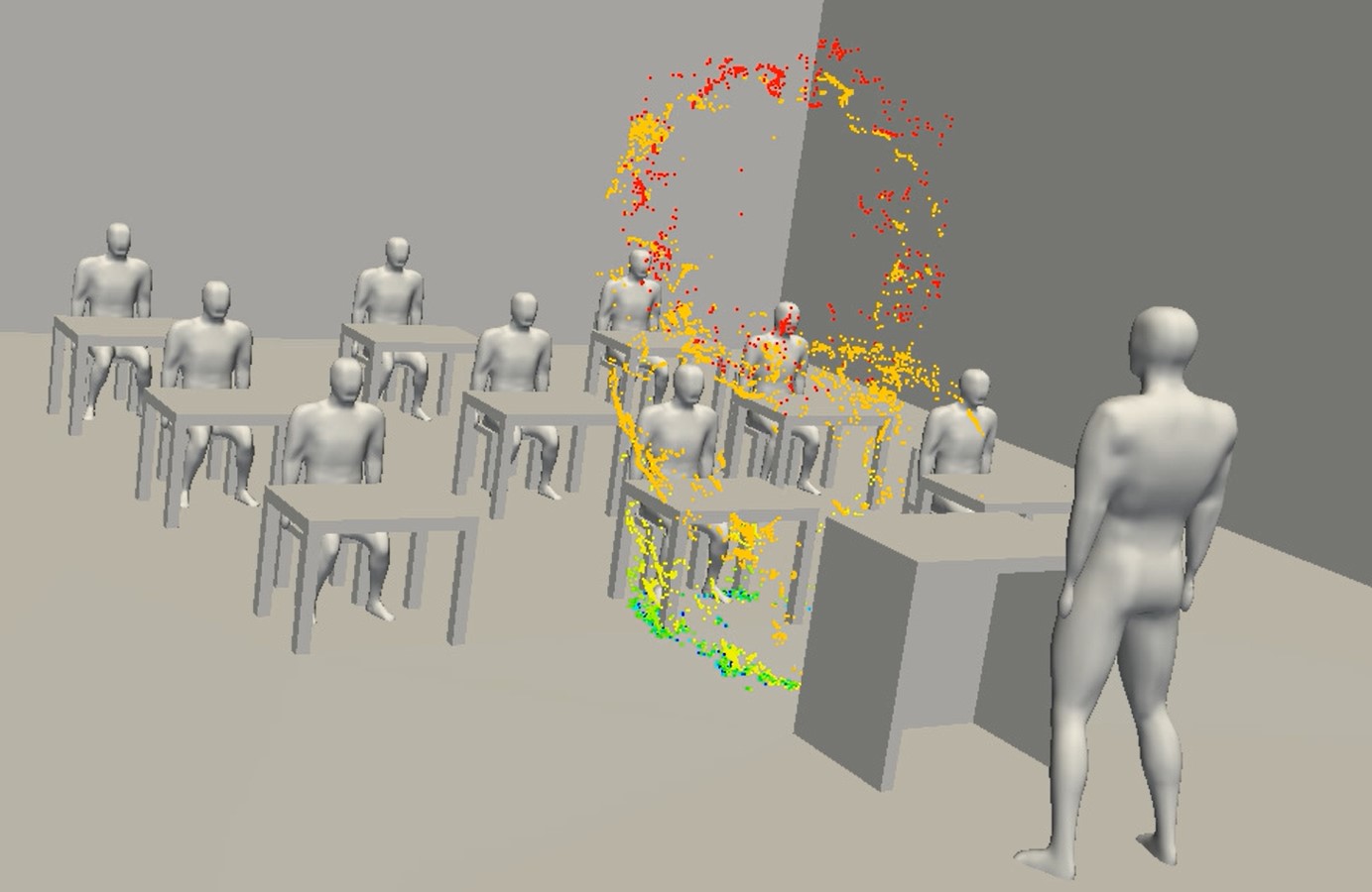 たとえば、飛沫って必ず液滴の中にウイルスが入ってて、その大きさがさまざまであるということはわかっています。大きなものは空気抵抗を受けてすぐに落ちますし、軽いものは蒸発して大体乾きます。0.1μ程度のものが空気と一緒に流れてくるので、空気の動きをシミュレーションすることで導き出すことができるんです。COVID‑19は拡大初期のころ、空気感染がないと言われていましたが、計算すれば空気感染の可能性も示すことができたんですよね。
